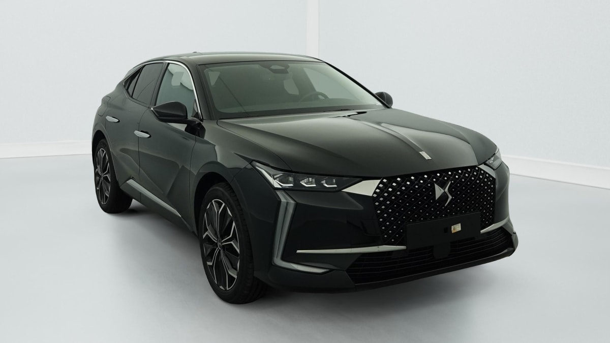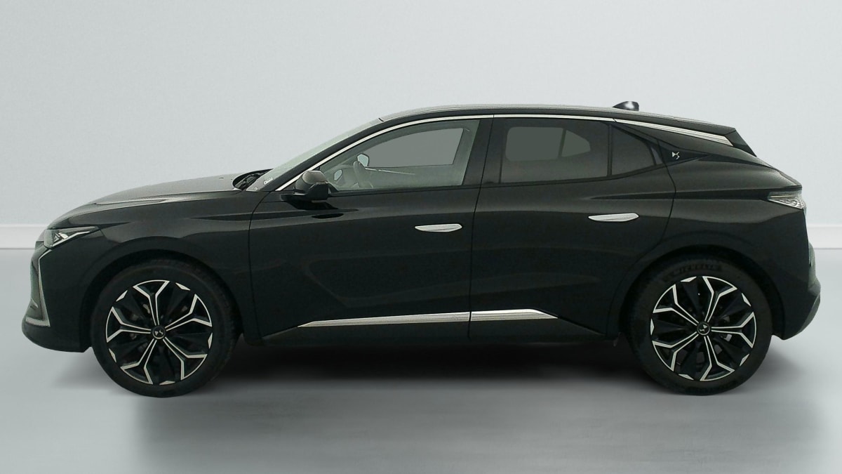 intérieur cuir grainé noir basalte et toile ds : ciel de pavillon clair décors de panneaux de porte chrome guilloché volant en cuir fleur mistral console centrale en toile ds mistral planche de bord en toile ds noir basalte façon écaille panneaux de portes en toile ds noir basalte façon écaille sellerie en cuir grainé noir basalte et toile ds