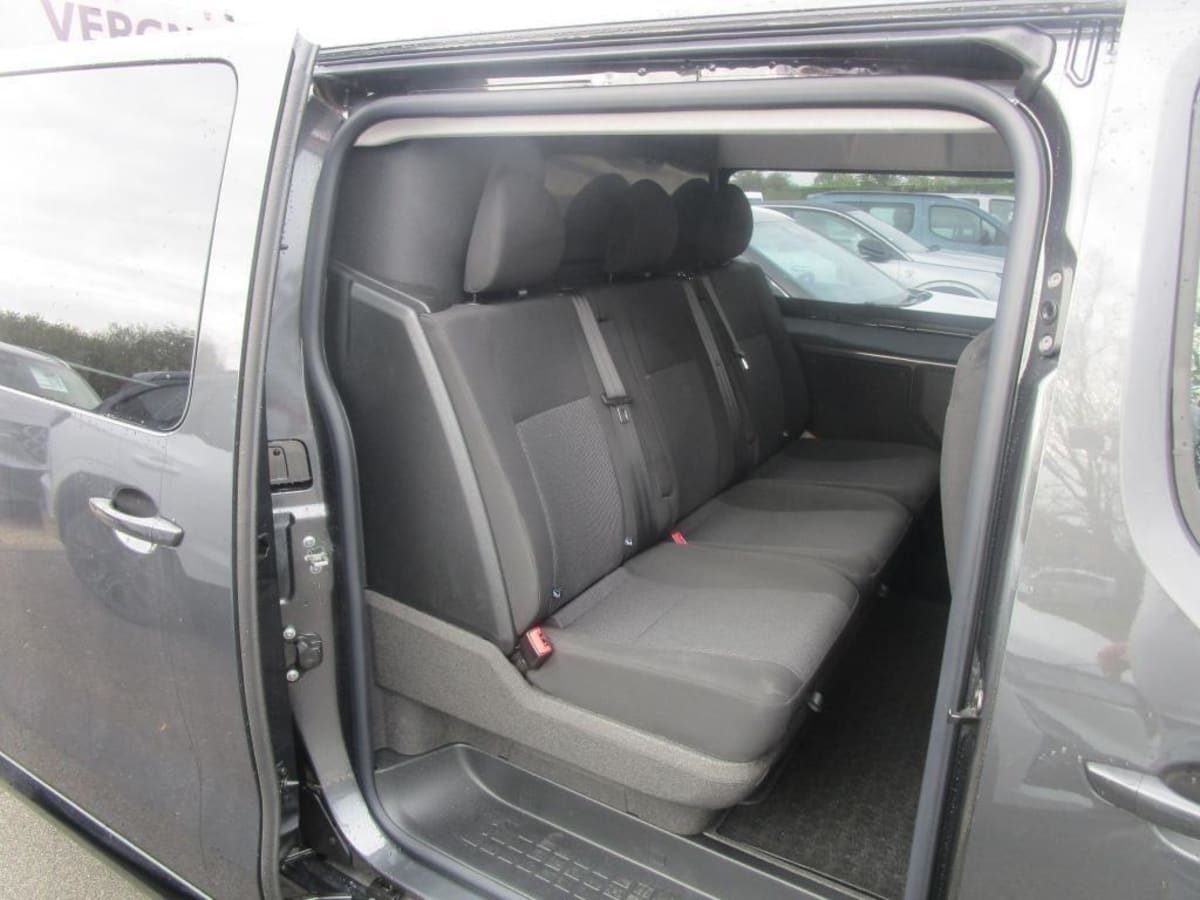 banquette fixe 3 places en rang 2 avec appui-tête réglables et 2 accoudoirs, position unique conforme aux réglementations fiscales pays, avec coffre de rangement amovible sous assises gauche et centrale (accessible depuis habitacle) et avec zone pour c