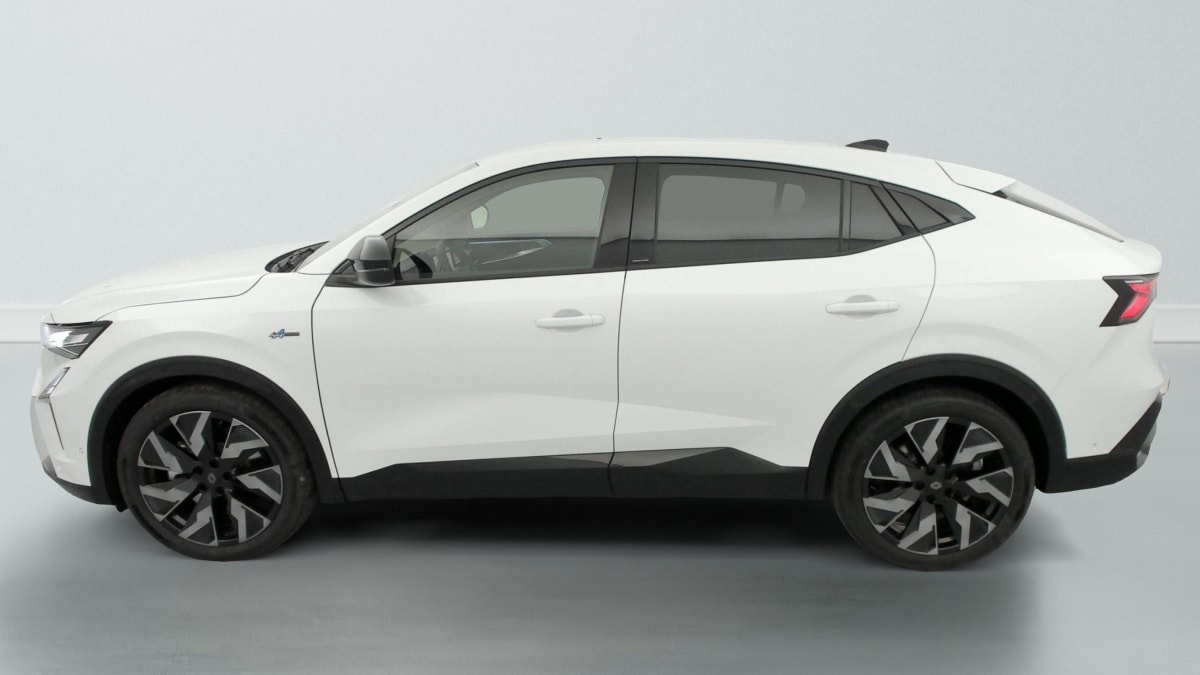 Sellerie mixte Alcantara avec surpiqûres bleues et logo Alpine lumineux