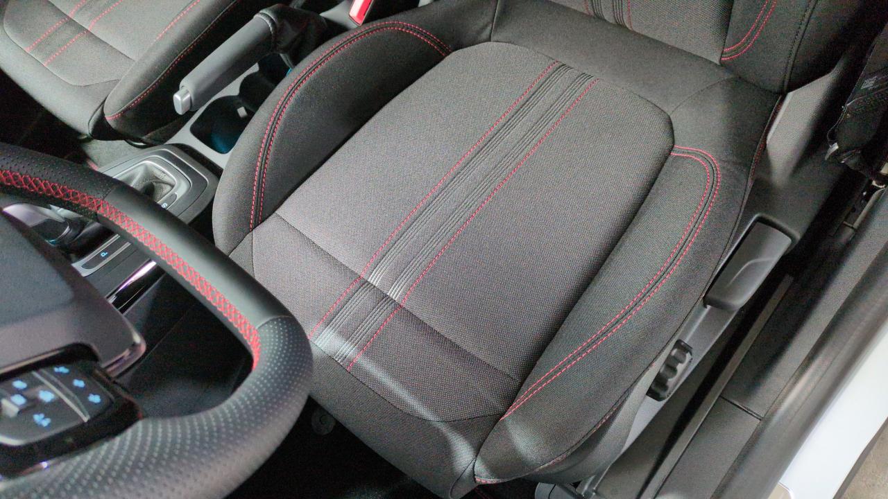 sièges av en tissu avec surpiqûres rouges