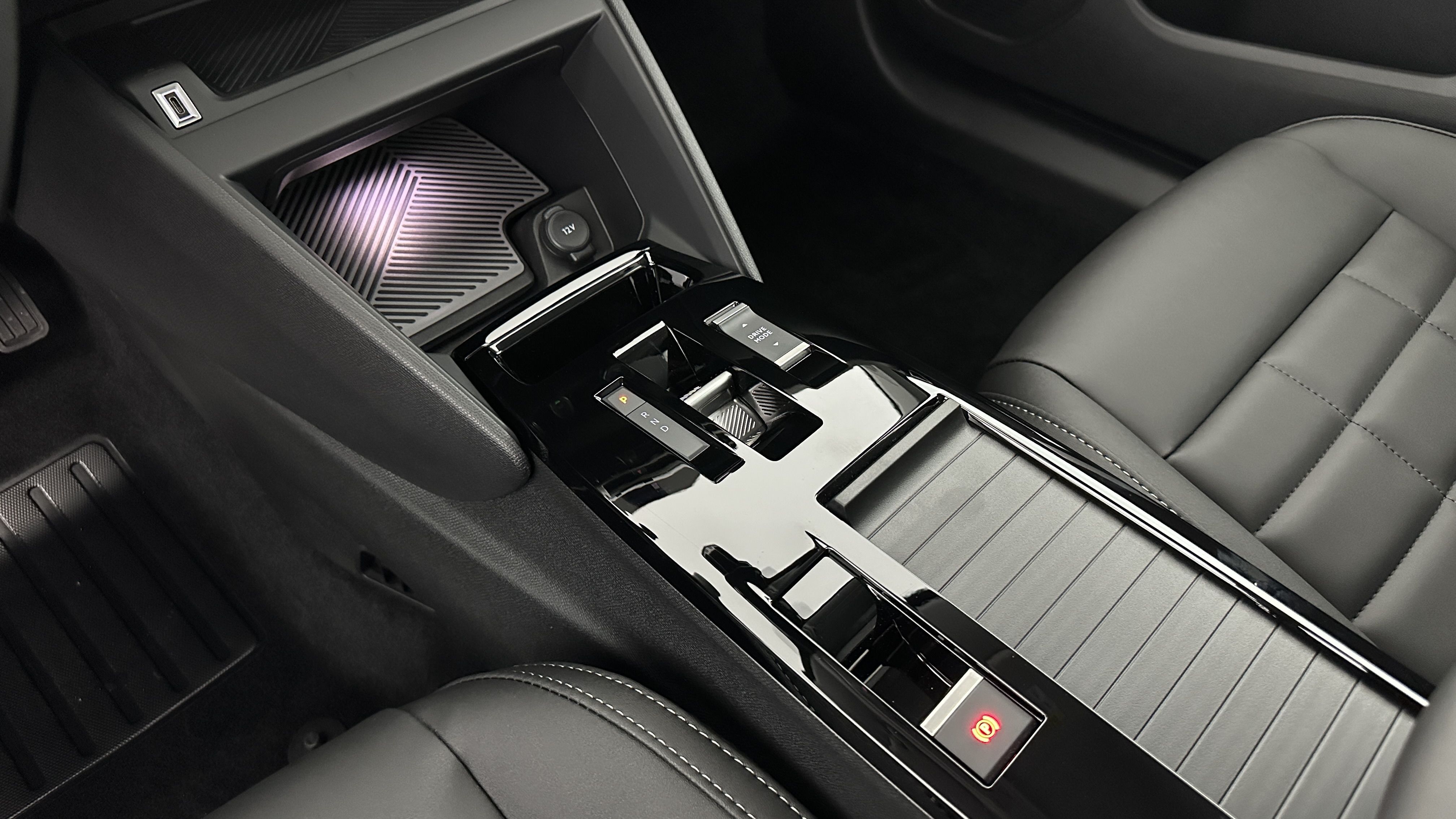 Console centrale haute avec rangements et accoudoir
